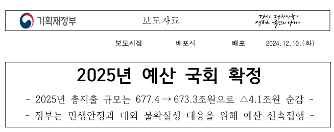 2025년 예산 국회 확정 | 보도·참고자료 | 기획재정부