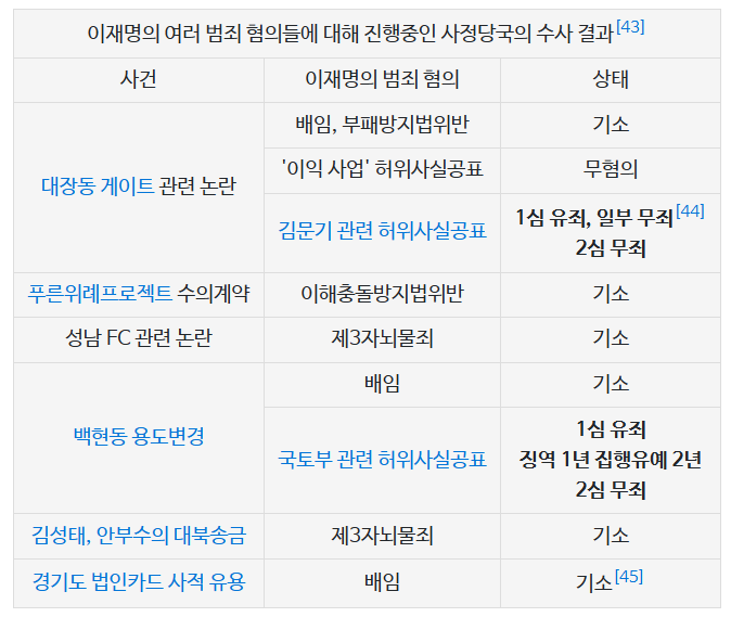 더불어민주당 대표 이재명이 김문기 관련 허위사실공표 건에서 2심 무죄를 받았다.